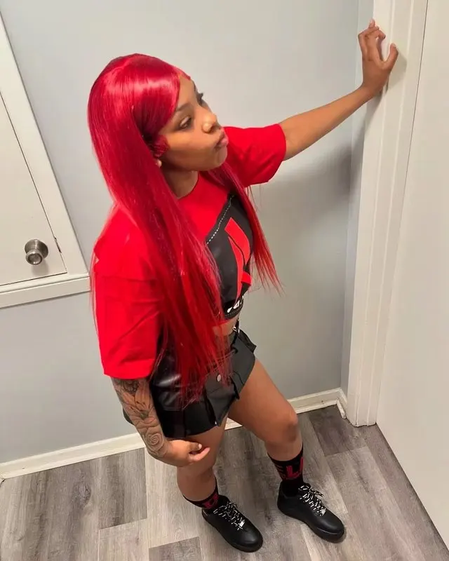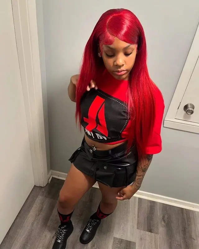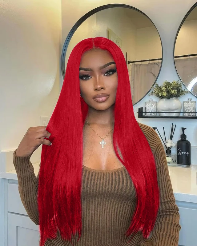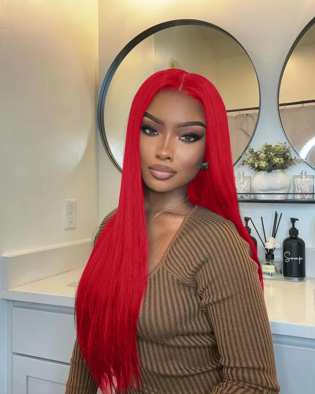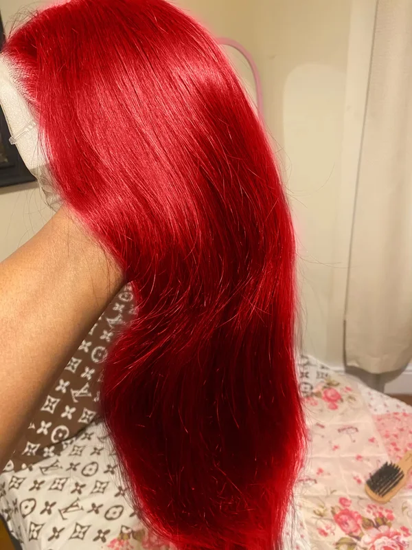 #Red Brazilian Straight Human Hair 13x4 Lace Front Colorful Hair Wig