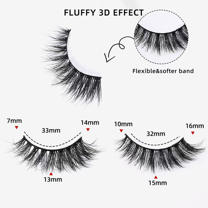 Includes 20 pairs of false lashes in 10 different styles for both daytime and nighttime looks