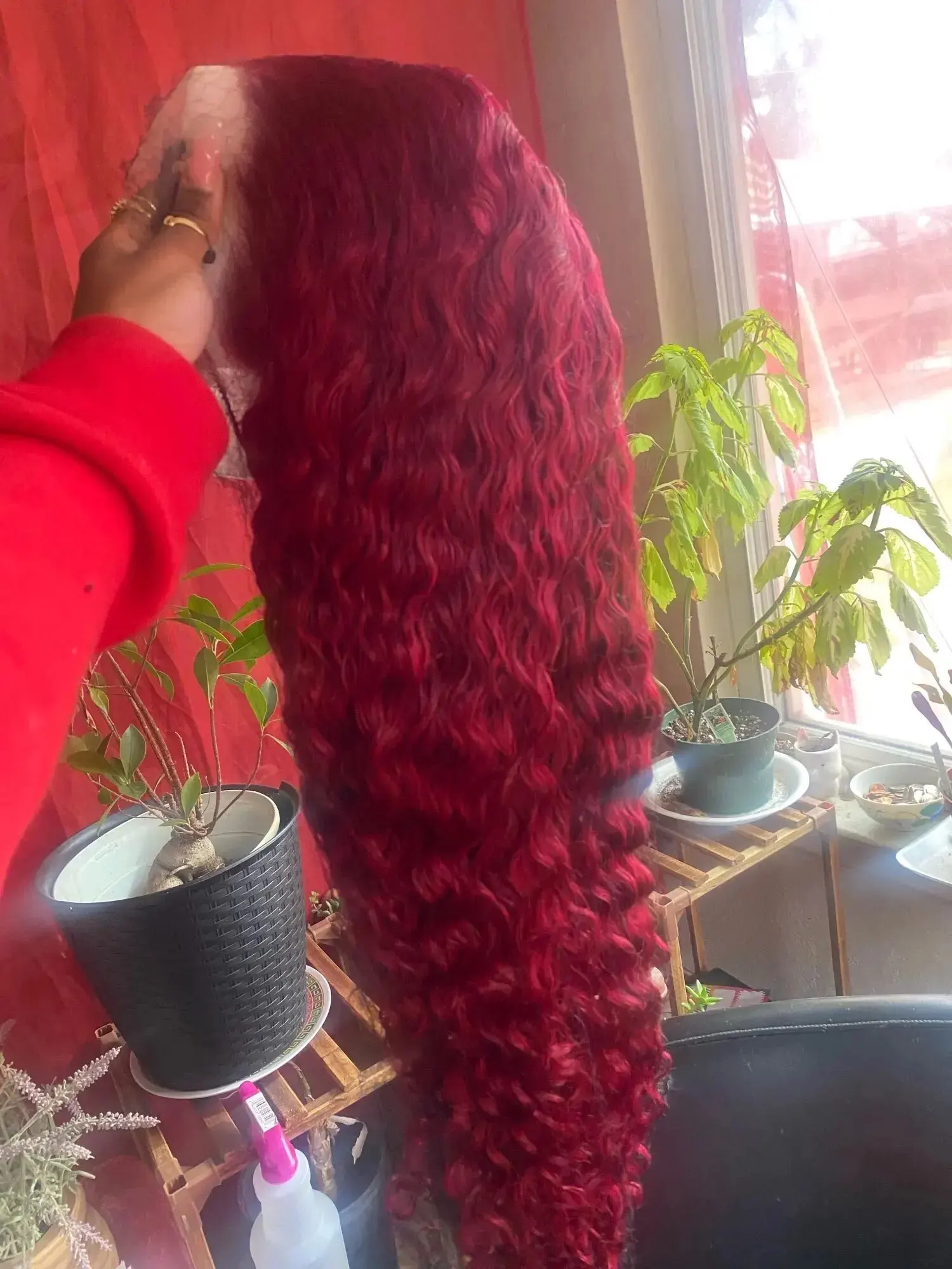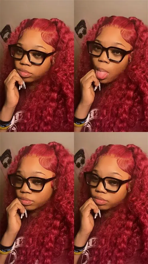 #99J Burgundy Water Wave Human Hair 13x4 Lace Frontal Wig