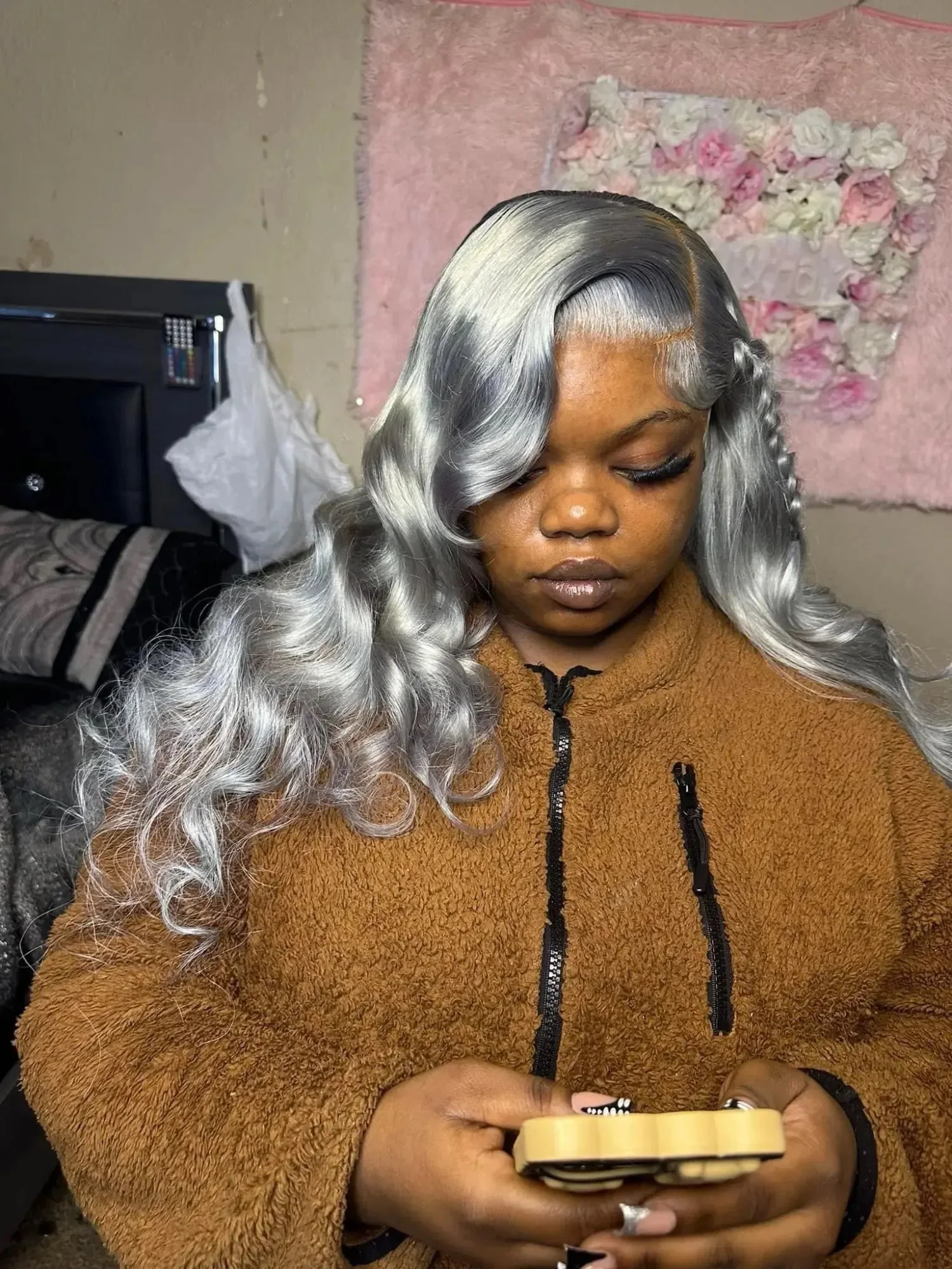 Grey Body Wave Human Hair 13x4 Lace Frontal Wig
