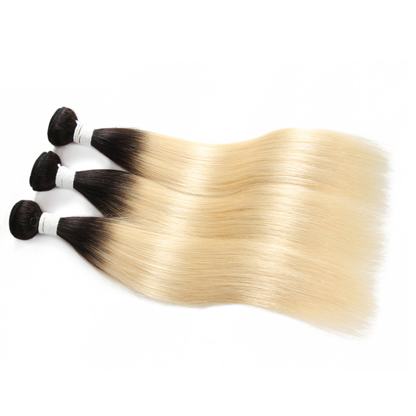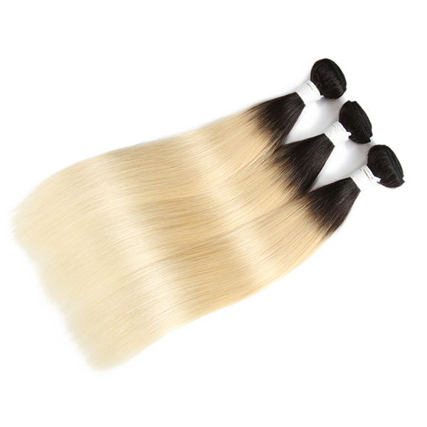 T1b/613 613 Blonde Dark Black Root Straight Human Hair 3 Bundles